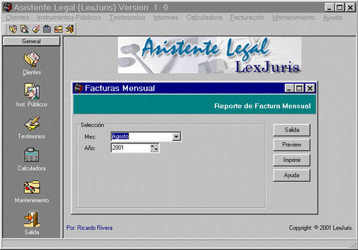 | Para una demostración en su oficina favor llamar a los teléfonos o email: Tels. (787) 269-6435 269-6475 Fax. (787) 269-6455 Email: lexjuris@lexjuris.com Tenemos plan de pago. Para más información y ver pantallas del programa presione aquí |