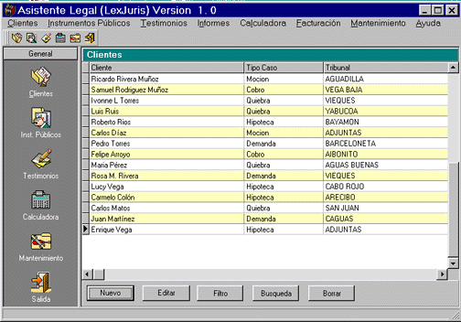 Pantalla principal de clientes - Presione aquí para ver otra pantalla Para bajar un demo de 30 días del programa presione aquí |